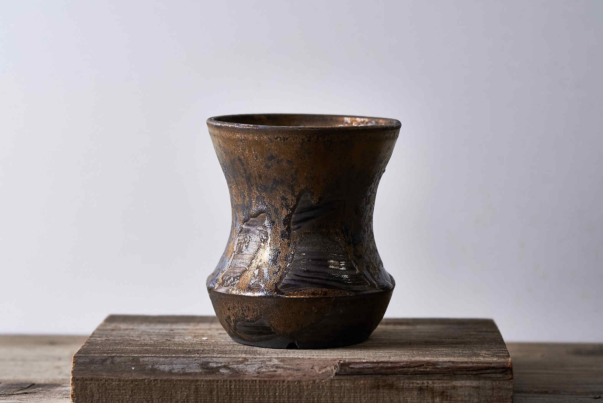 姫野さんが得意とする金彩の表現が詰まった作品です。窯の中でとろけたようなと釉薬表情と輝きは姫野さんにしか出来ないと言っても過言ではないと思います。