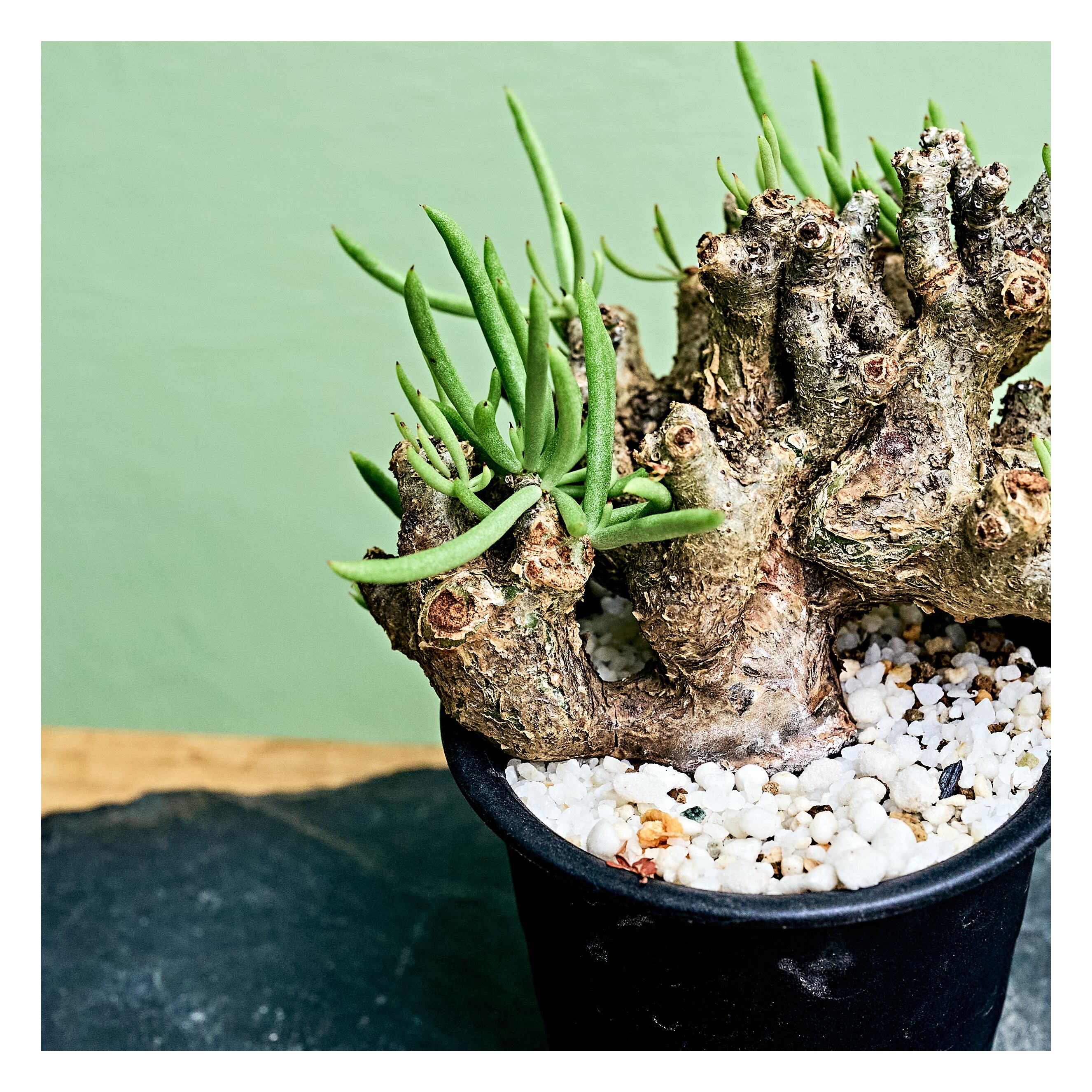 壺型の幹と多肉質な円筒形の葉が特徴の人気種です。